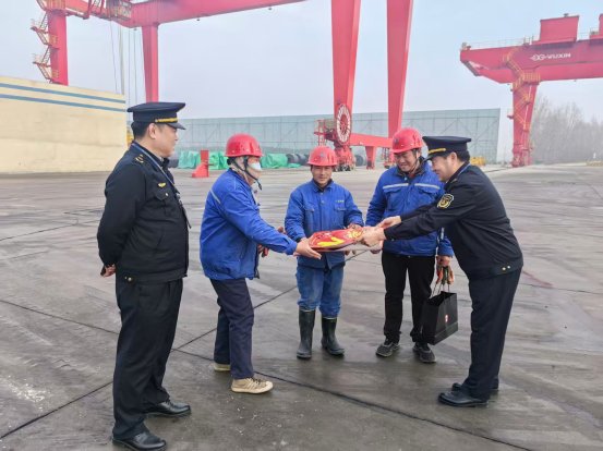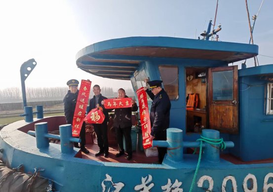 活动中,执法人员带着红彤彤的福字、春联与新春问候,走进辖区港口和码头,登船入户,将一份份满载吉祥的“新春福礼”送到船民手中,与大家话家常、问需求、送祝福。细致叮嘱春节期间水上航行、港口作业的安全注意事项,提醒做好防寒保暖、安全防护、用火用电安全,注意预防雨雪寒潮大风等恶劣天气。