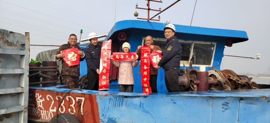 “谢谢你们,今年又收到你们的春联。眼下正是春运繁忙时候,本想着送完货到家后再抽空买春联,没想到你们提前给送到了,太贴心了……”船民李师傅开心地从交通执法人员手上接过红彤彤的春联。